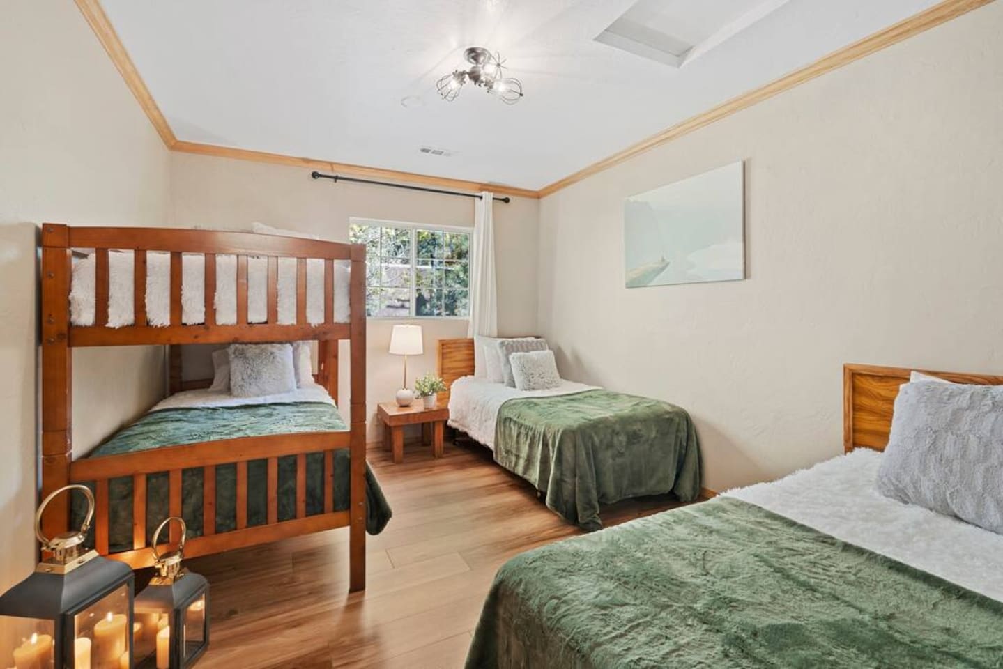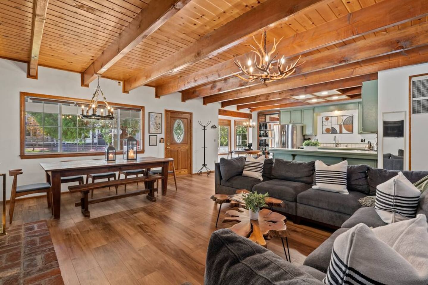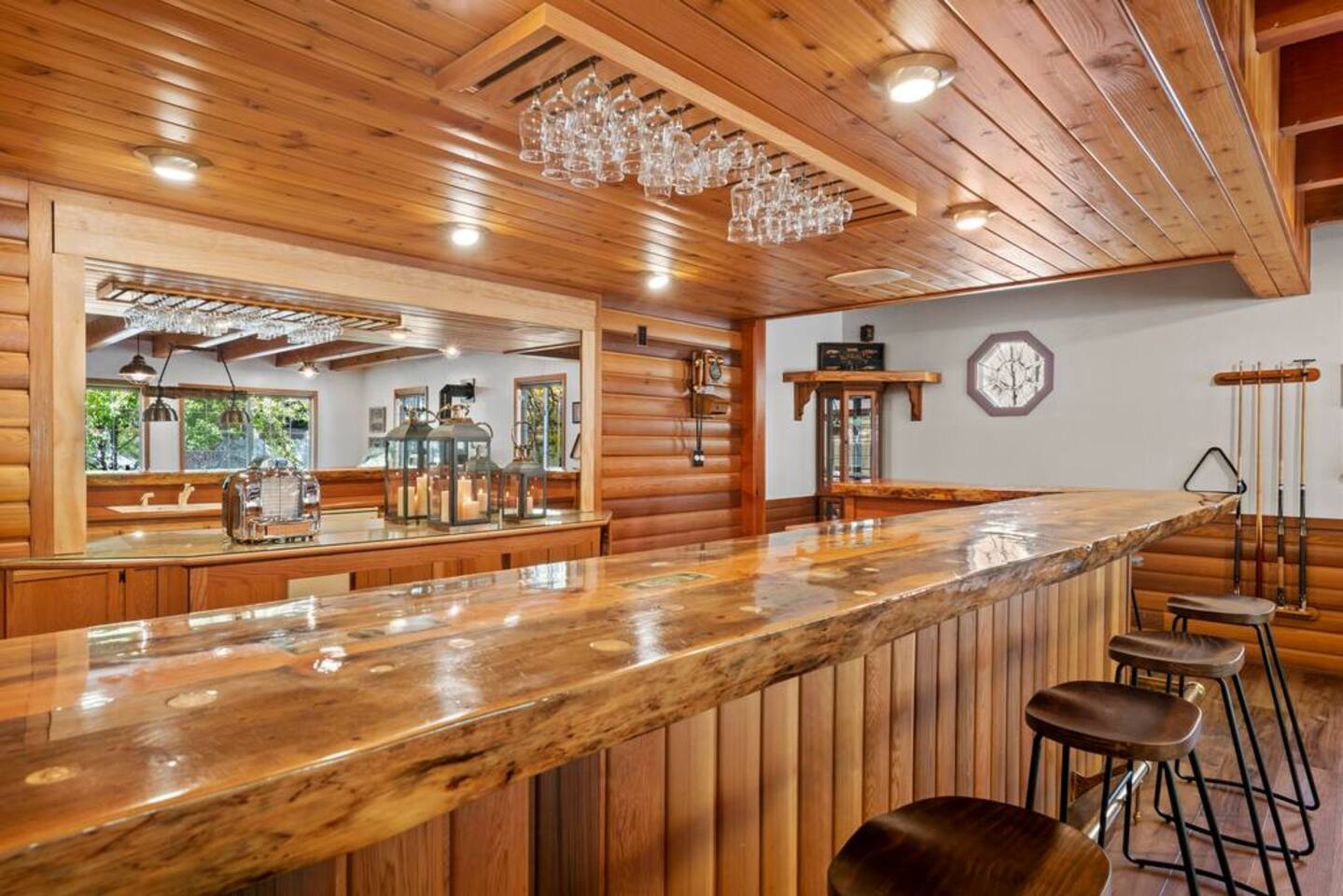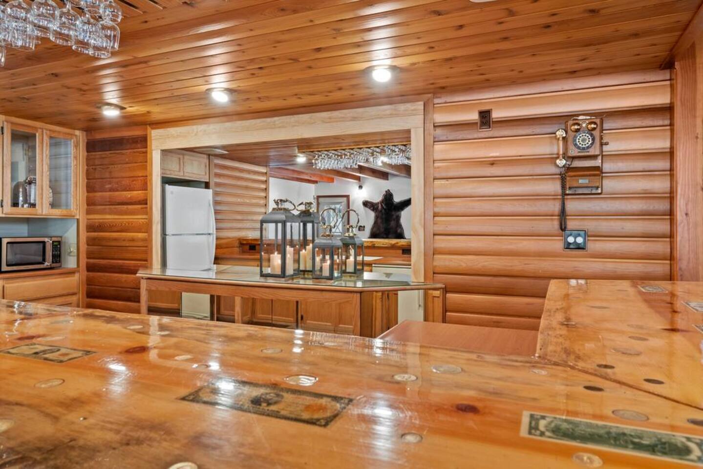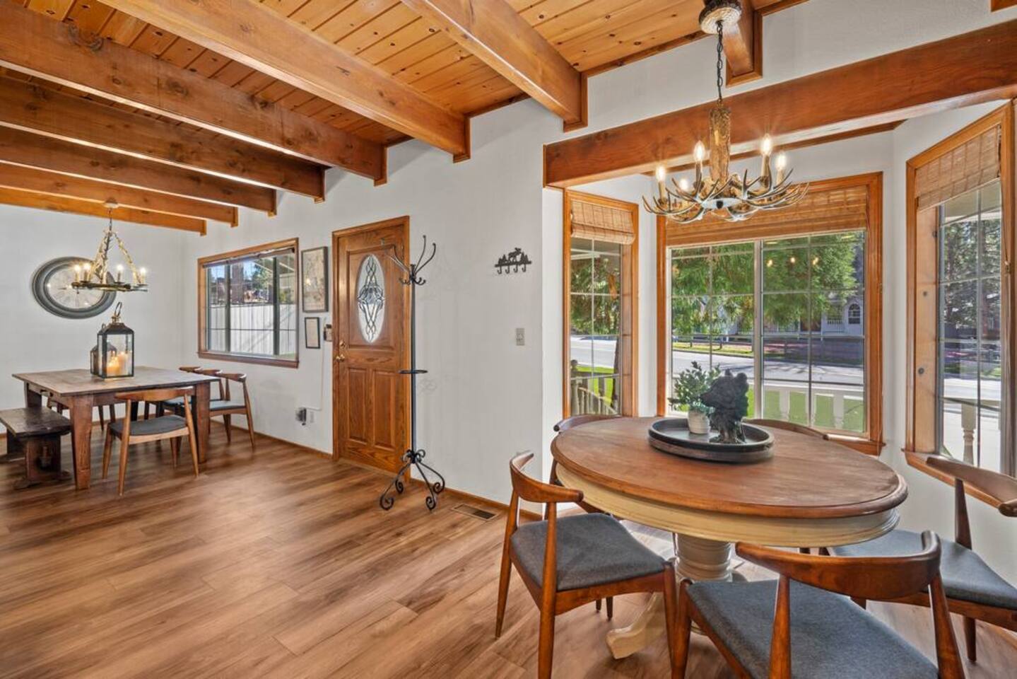 LIVING SPACE – Enjoy 3,000+ sq. ft. of comfort with a cozy living room, dining area, bar seating, and a stunning wood-burning fireplace. Relax on plush seating, perfect for gathering with family and friends. Located in the prestigious Fox Farm community, you're just minutes from Big Bear Lake, hiking trails, golf courses, and the charming shops and restaurants of Big Bear Lake Village. This spacious home offers the ideal blend of mountain charm and modern convenience. 5 BEDROOMS & 3 BATHROOMS (All Bedrooms are on the 2nd floor) ★ 1st bedroom has has a king bed. ★ 2nd bedroom has a king bed. ★ 3rd bedroom has a King bed. ★ 4th bedroom has a 2 Queen Beds ★ 5th bedroom has 4 twin beds (Bunk bed w 2 twin beds + additional 2 twin beds) Extra blankets and pillows are available. AMENITIES ★ 2 smart TVs ★ fast WiFi ★ dedicated work space. EXTRA LARGE GAME ROOM ★ Game Room with BAR ★ Pool Table ★ Foosball ★ Ping-Pong ★ 100+ Arcade games ★ Board games Monopoly and more ★ Classic arcade table has 412 games! (Pac-Man, Ms Pac-Man, Donkey Kong, Galaga, etc.) ★Various board games & puzzles KITCHEN ★ Kitchen island for everyone to gather together ★Fully equipped & stocked kitchen ★ 5 burner stove with griddle and oven ★ 2 refrigerators ★ dishwasher ★ new stainless steel appliances ★microwave, blender, toaster ★ coffee maker ★ dishes, pots/pans ★ spice rack, and more Other amenities: ★Central AC + Heating ★ Onsite Laundry Room with Washer + Dryer ★ Parking → garage (2 cars) + 4 car driveway ★ Level 2 EV charger* (Tesla drivers need to bring their own adapter) ★ Dedicated workspace ★ 65" Smart TV w/ Netflix ★ Indoor gas fireplace ★ Dedicated work space ★ FREE Wifi OUTDOOR AMENITIES ★ Fully fenced backyard ★ Large front and back deck ★ "Big Bear Lake style outdoor furniture" ★ Gas Grill ★ Travel size starter kit of shampoo, conditioner & soap provided. ★ Hot tub (additional $45/day)