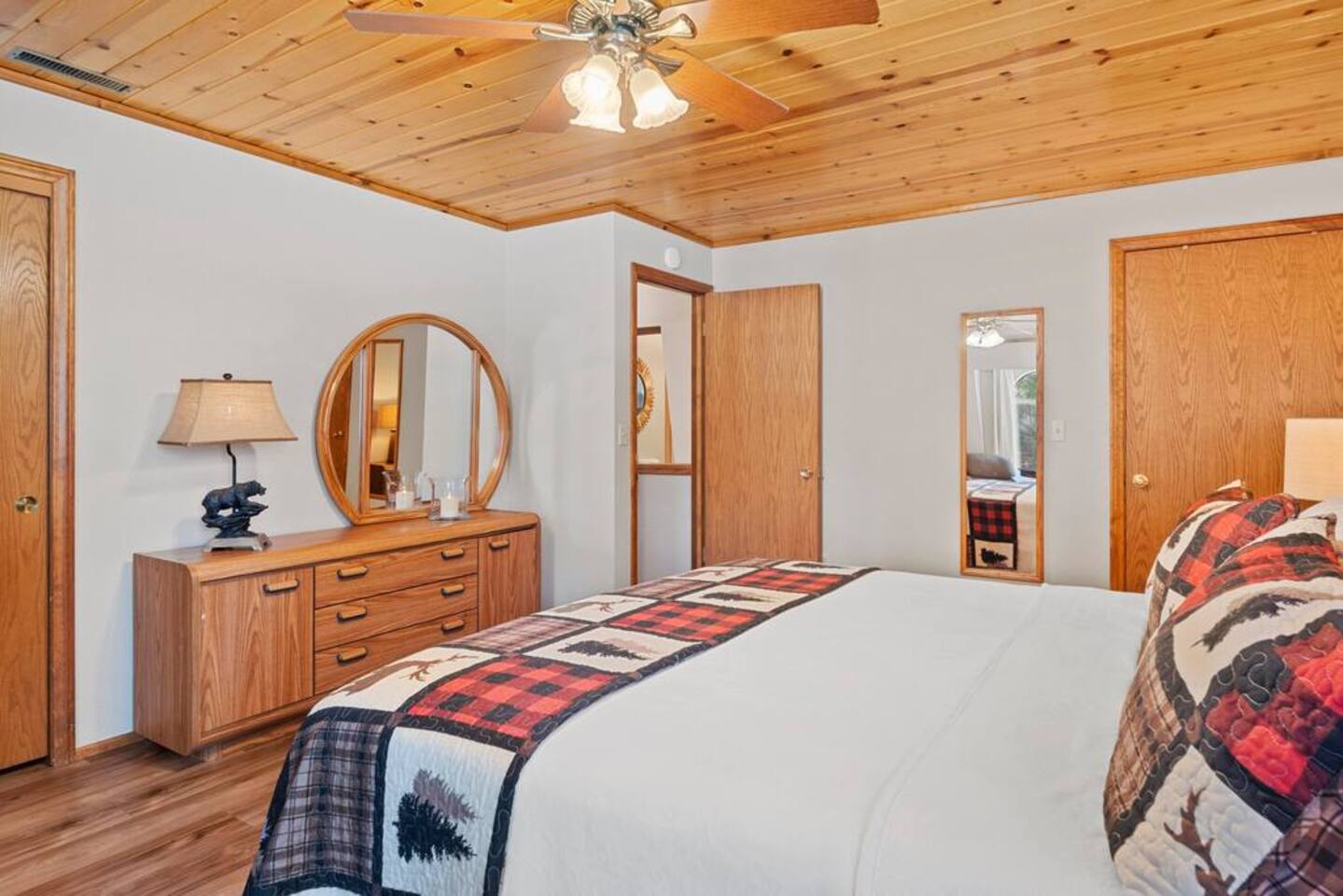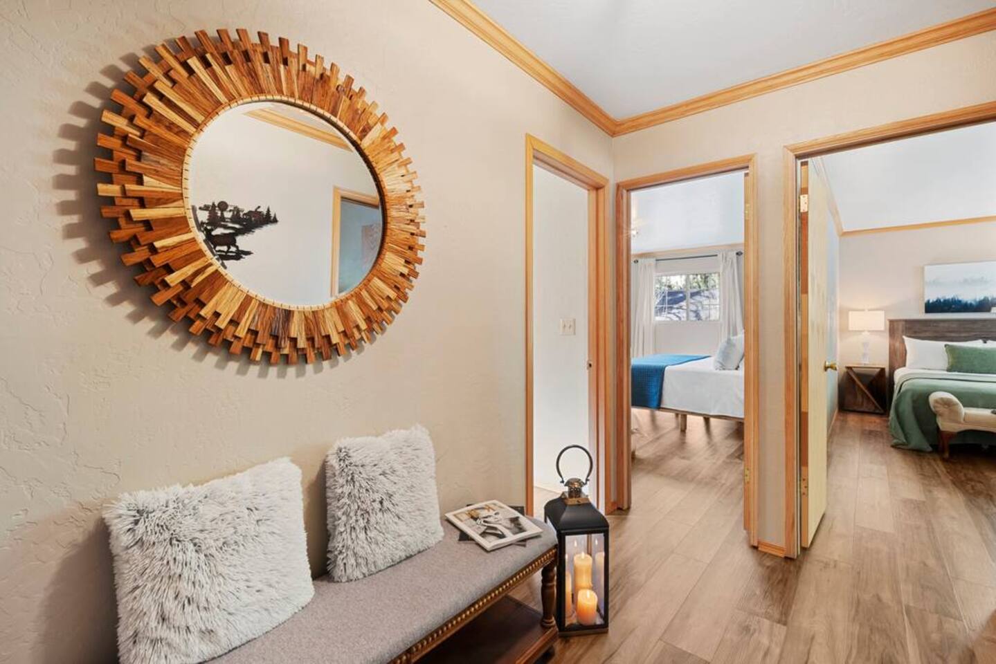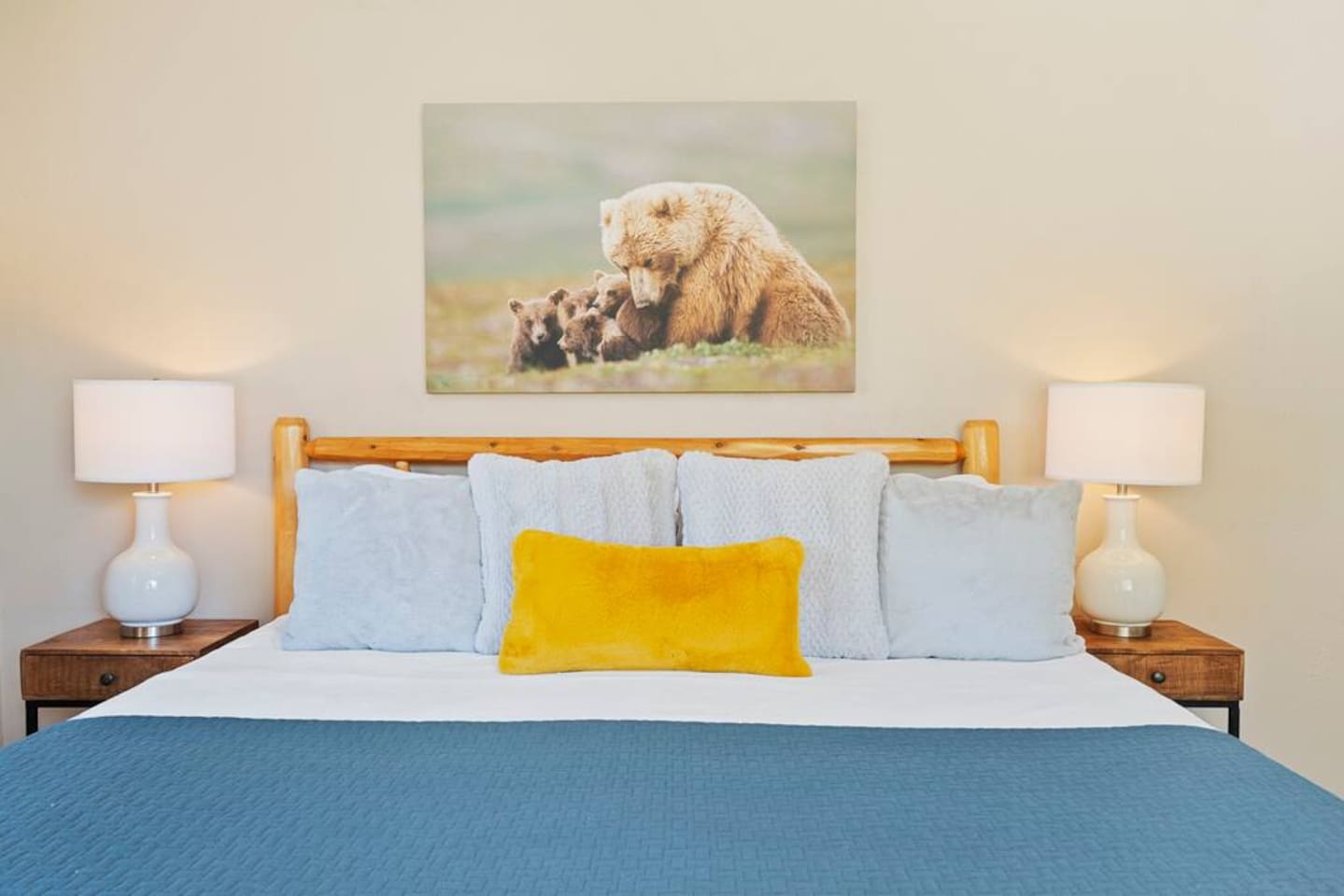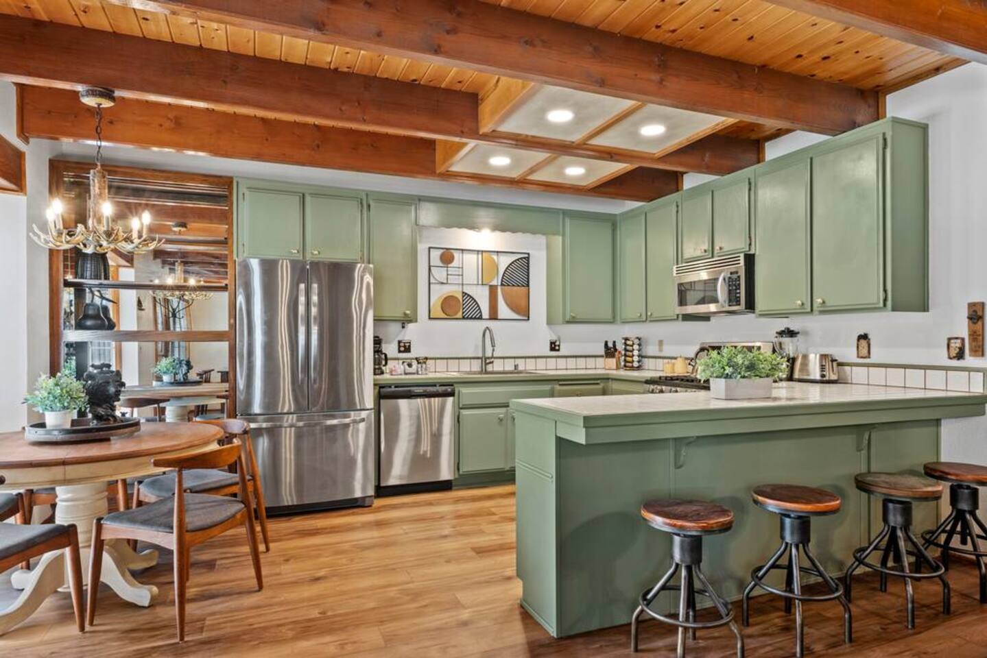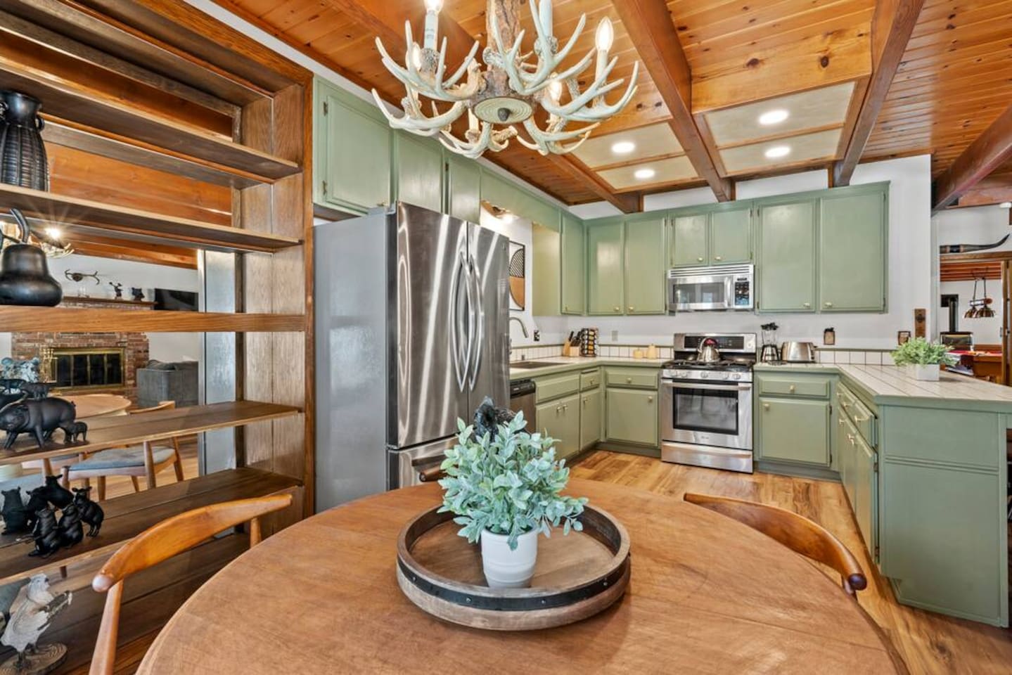 LIVING SPACE – Enjoy 3,000+ sq. ft. of comfort with a cozy living room, dining area, bar seating, and a stunning wood-burning fireplace. Relax on plush seating, perfect for gathering with family and friends. Located in the prestigious Fox Farm community, you're just minutes from Big Bear Lake, hiking trails, golf courses, and the charming shops and restaurants of Big Bear Lake Village. This spacious home offers the ideal blend of mountain charm and modern convenience. 5 BEDROOMS & 3 BATHROOMS (All Bedrooms are on the 2nd floor) ★ 1st bedroom has has a king bed. ★ 2nd bedroom has a king bed. ★ 3rd bedroom has a King bed. ★ 4th bedroom has a 2 Queen Beds ★ 5th bedroom has 4 twin beds (Bunk bed w 2 twin beds + additional 2 twin beds) Extra blankets and pillows are available. AMENITIES ★ 2 smart TVs ★ fast WiFi ★ dedicated work space. EXTRA LARGE GAME ROOM ★ Game Room with BAR ★ Pool Table ★ Foosball ★ Ping-Pong ★ 100+ Arcade games ★ Board games Monopoly and more ★ Classic arcade table has 412 games! (Pac-Man, Ms Pac-Man, Donkey Kong, Galaga, etc.) ★Various board games & puzzles KITCHEN ★ Kitchen island for everyone to gather together ★Fully equipped & stocked kitchen ★ 5 burner stove with griddle and oven ★ 2 refrigerators ★ dishwasher ★ new stainless steel appliances ★microwave, blender, toaster ★ coffee maker ★ dishes, pots/pans ★ spice rack, and more Other amenities: ★Central AC + Heating ★ Onsite Laundry Room with Washer + Dryer ★ Parking → garage (2 cars) + 4 car driveway ★ Level 2 EV charger* (Tesla drivers need to bring their own adapter) ★ Dedicated workspace ★ 65" Smart TV w/ Netflix ★ Indoor gas fireplace ★ Dedicated work space ★ FREE Wifi OUTDOOR AMENITIES ★ Fully fenced backyard ★ Large front and back deck ★ "Big Bear Lake style outdoor furniture" ★ Gas Grill ★ Travel size starter kit of shampoo, conditioner & soap provided. ★ Hot tub (additional $45/day)