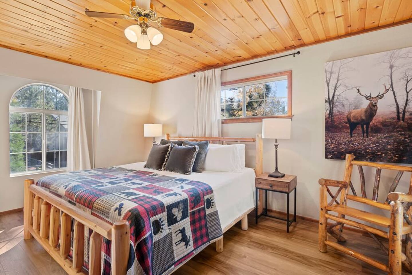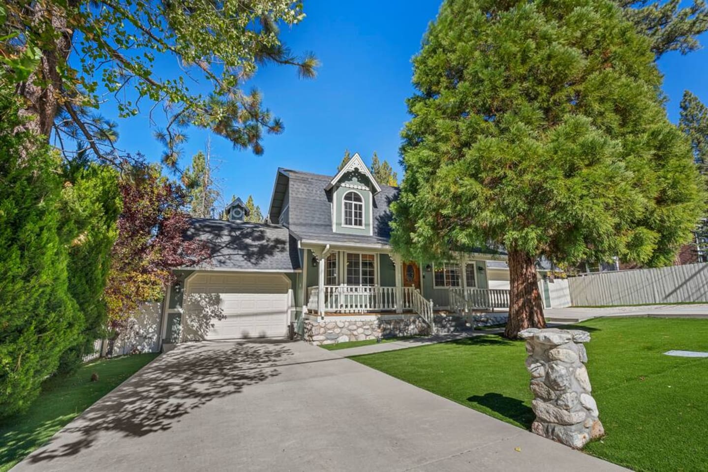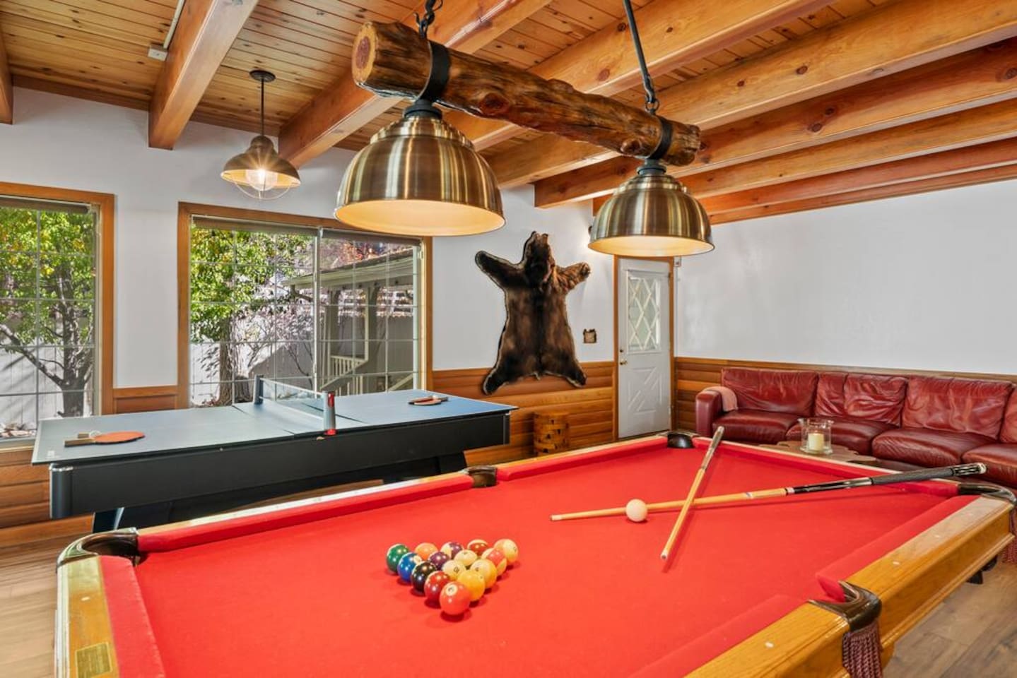 Welcome to this luxurious 5-bedroom villa in upscale Fox Farm! Enjoy soaring wood cathedral ceilings, large windows, A/C, and a game room with pool, ping pong, foosball, and arcade console. Just 3 miles to Big Bear Lake Village, 1 mile to Snow Summit, the zoo, ski resort, and summer golf. This expansive two-story retreat offers comfort, fun, and convenience—perfect for your mountain vacation. Scenic trails and outdoor adventure await just minutes from your door.