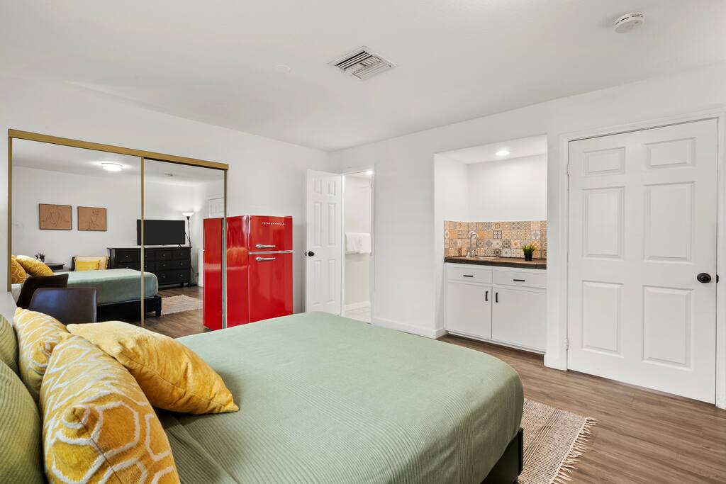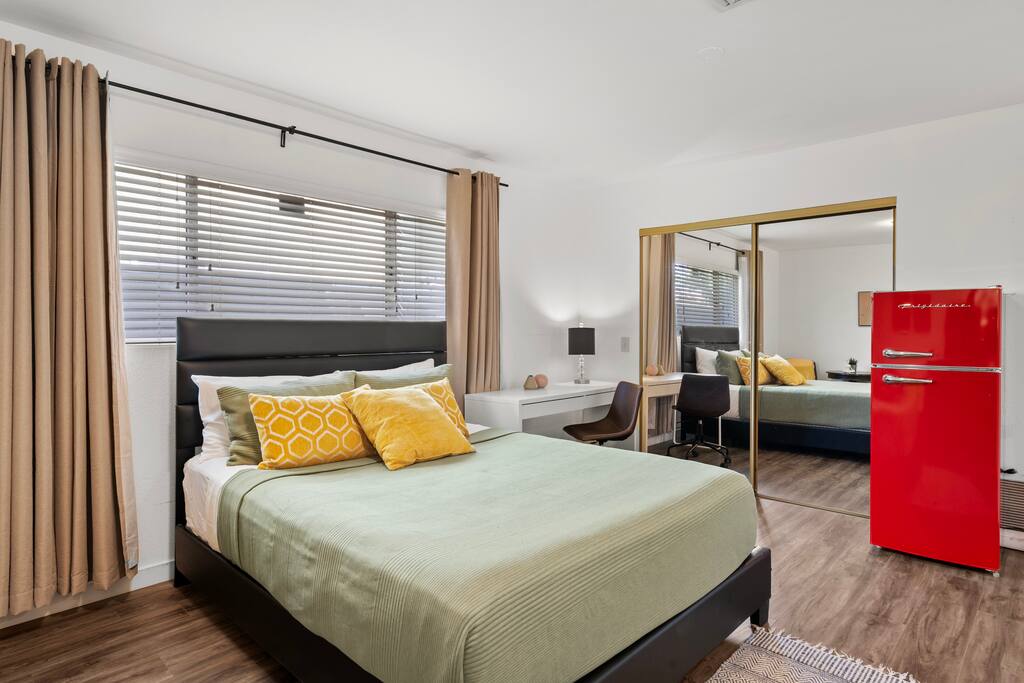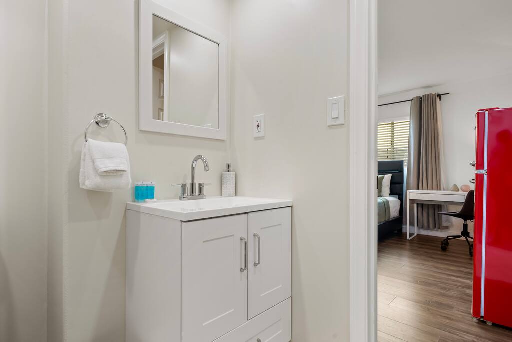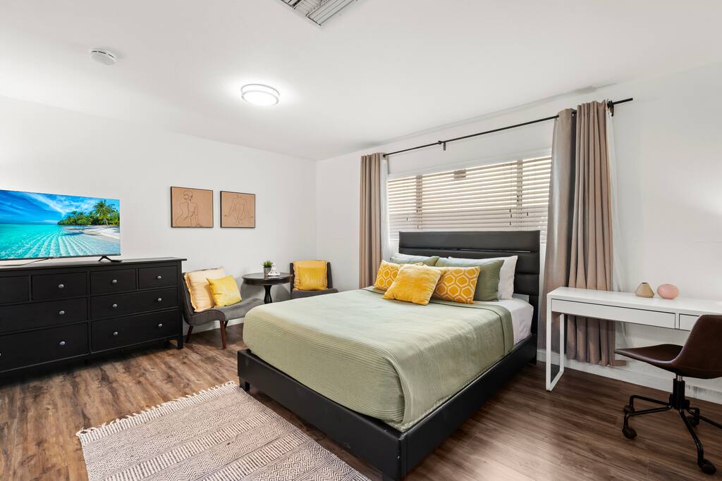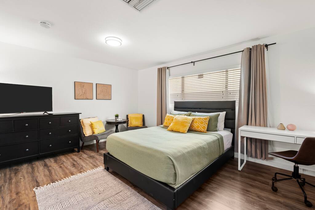 Professionals, enjoy our luxurious private oasis! Yard with pool is surrounded by high trees for complete privacy. Home offers: ➡extra large home ➡full kitchen ➡modern living areas ➡65" TV ➡backyard with pool ➡outdoor furniture ➡cleaning of shared areas only Your private room offers: ➡Lavish queen bed ➡TV ➡Private bath/shower ➡Desk for work ➡Armchairs and small table ➡Bar/kitchenette ➡Private small fridge ➡Extra large closet & cabinet ➡Blackout curtains
