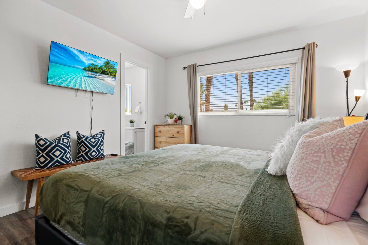 Professionals, enjoy our luxurious private secluded oasis with your private room & your private remodeled bathroom & shower. Unwind in a spacious room and relax poolside or under the gazebo in a yard surrounded by high trees for complete privacy. Adjacent to Palm Springs, the "happening city". Convenient Freeway Access to all Desert Adventures. Weekly cleaning of all shared areas included. Book Now!